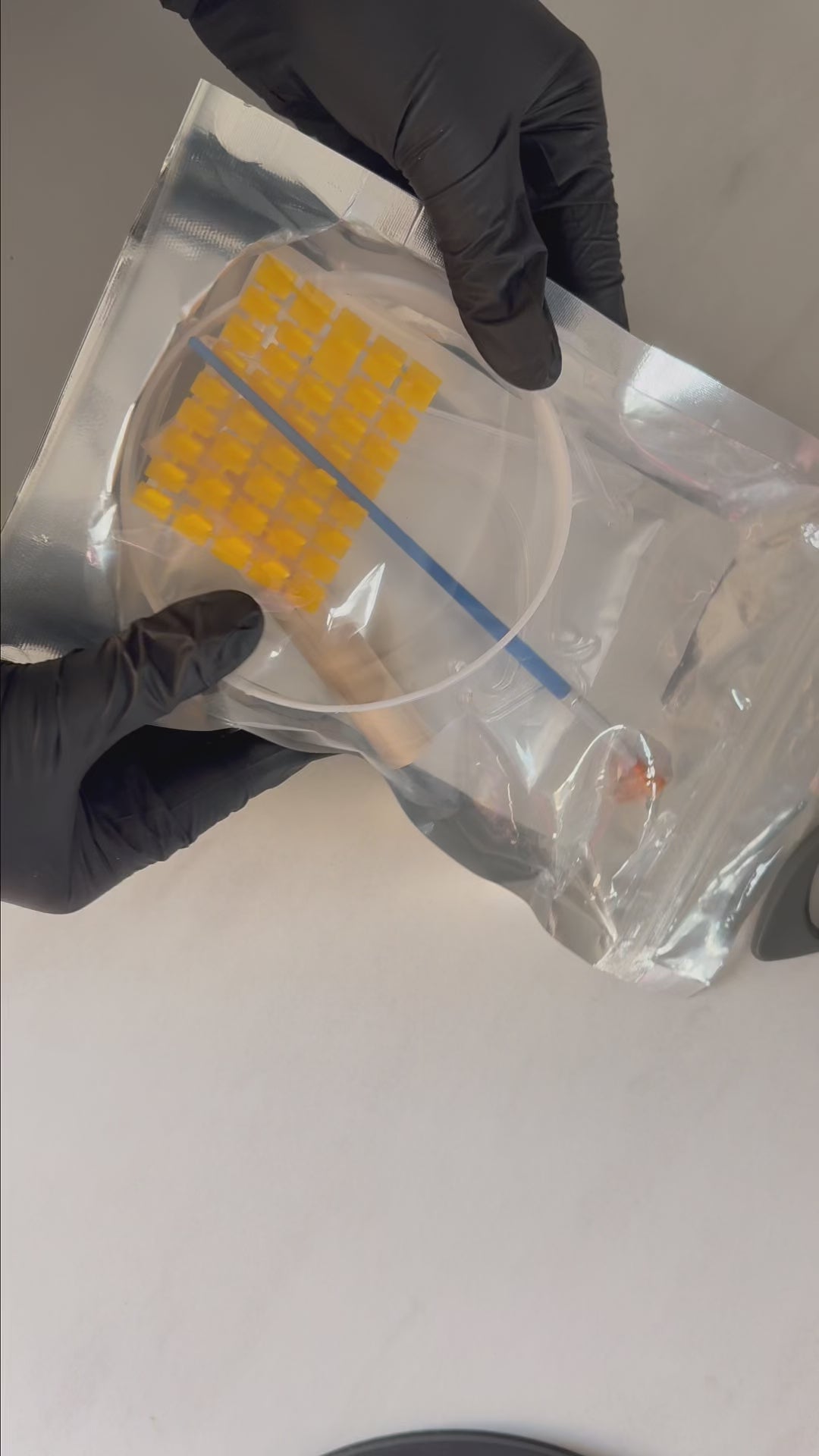 Idéalement, la patte doit être légèrement tendue afin que l’animal pose naturellement son poids.